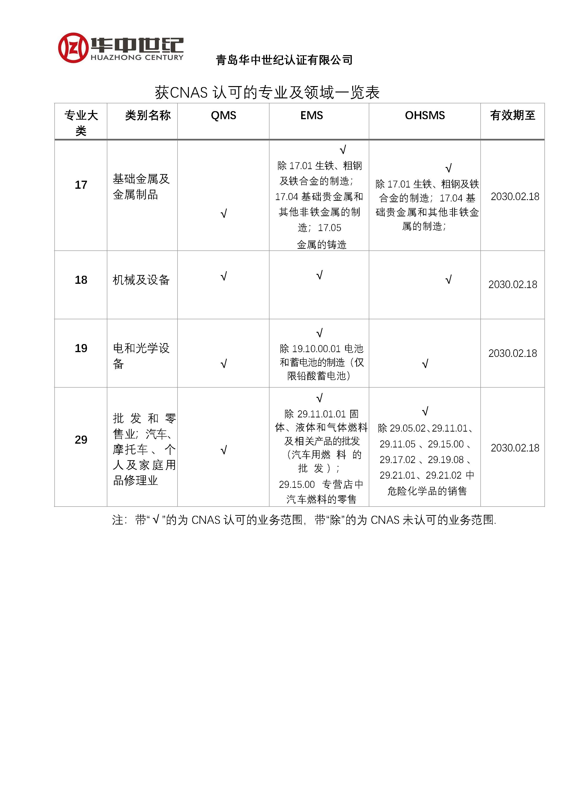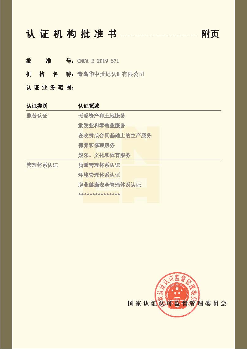 認證機構批準書-認證領域范圍
